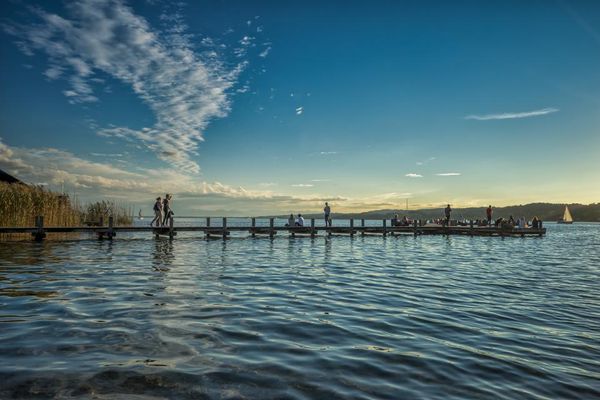 Der Badeplatz Rossschwemme ist ein Familienparadies, in dem Kinder und Erwachsene gleichermaßen glücklich werden. Während die kleinen Badegäste im flachen, sandigen Uferbereich planschen und auf dem Spielplatz und der großen Liegewiese toben, können die Großen im Liegestuhl relaxen oder es sich im Biergarten des Seekiosk gut gehen lassen. Die Rossschwemme ist außerdem eine der zwei offiziellen Einlassstellen für eigene SUPs – und wer kein Paddleboard besitzt, kann einfach am Kiosk eines mieten.